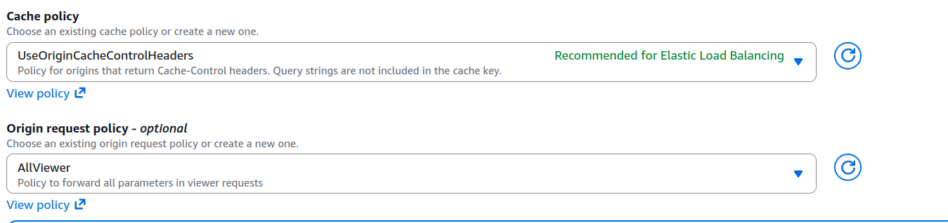 Ensure that the cache policy is set to UseOriginCacheControlHeaders, and the Origin request policy is set to AllViewer.
