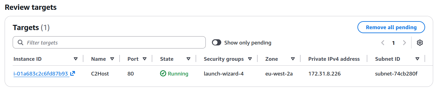 If the target successfully activates, it’s state should change to running. If not, you may want to review the EC2 instances security groups to ensure HTTP traffic is allowed.